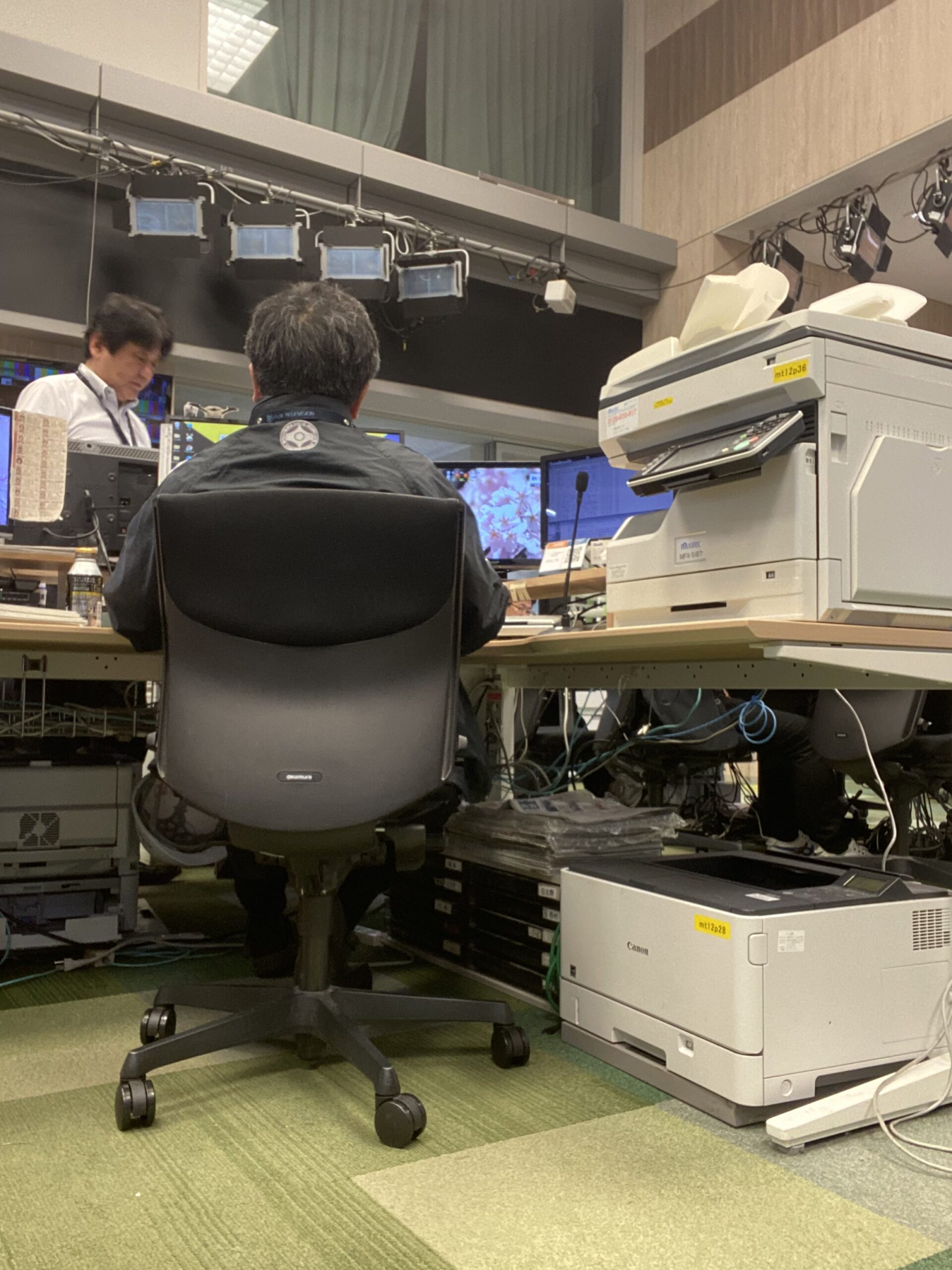 向かい側に政治デスクの先輩が映り込んでしまった・・・すみません。